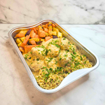 Ingrédients : Boulette de viande, moutarde, pâte aux œufs, mélange de légume, crème, demi-glace, ail, sauce épicé du commerce