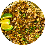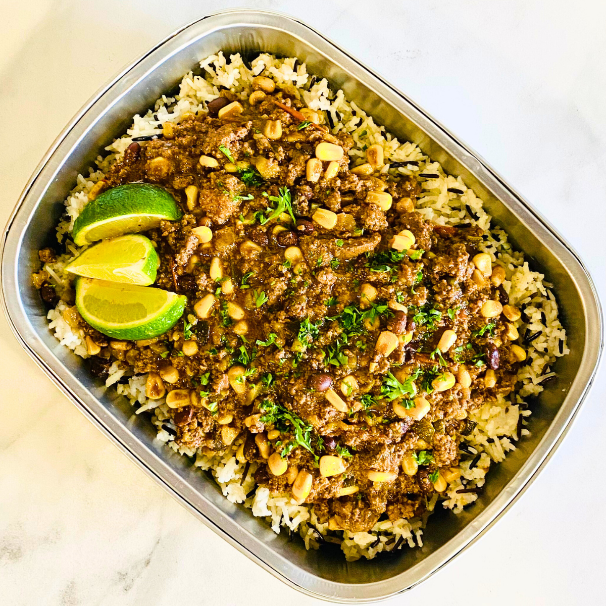 Prix unitaire parIngrédients : Bœuf et porc, salade de maïs, tomate en dés, riz basmati, bouillon de poulet, fines herbes