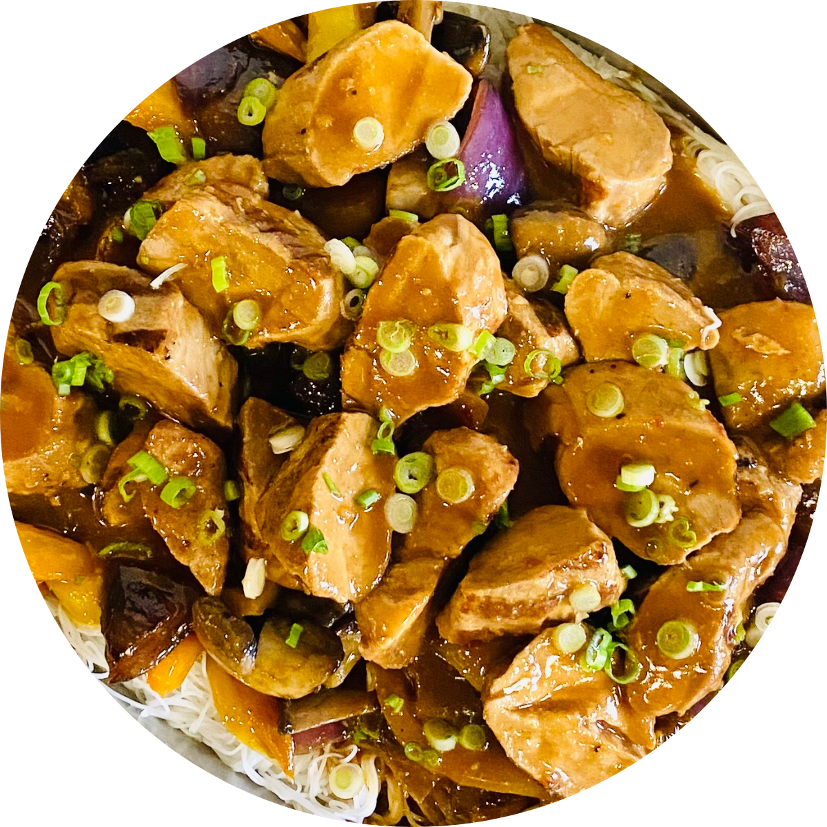 Prix unitaire parIngrédients : Porc, vermicelle de riz, poivron, oignon, sauce thaï